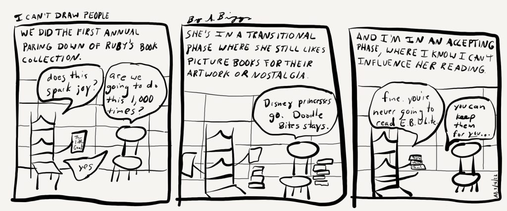 We did the first annual paring down of Ruby’s book collection.