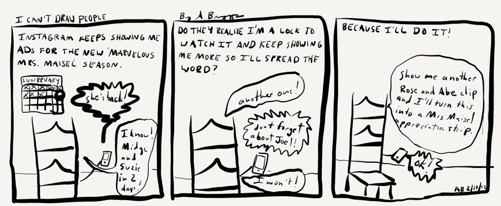Instagram keeps showing me ads for the new season of The marvelous Mrs Maisel