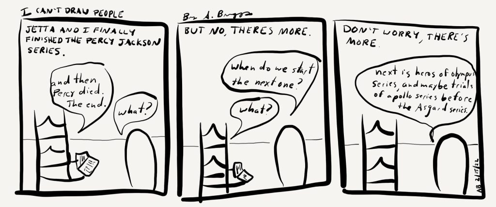 Jetta and I finally finished the Percy Jackson Series.